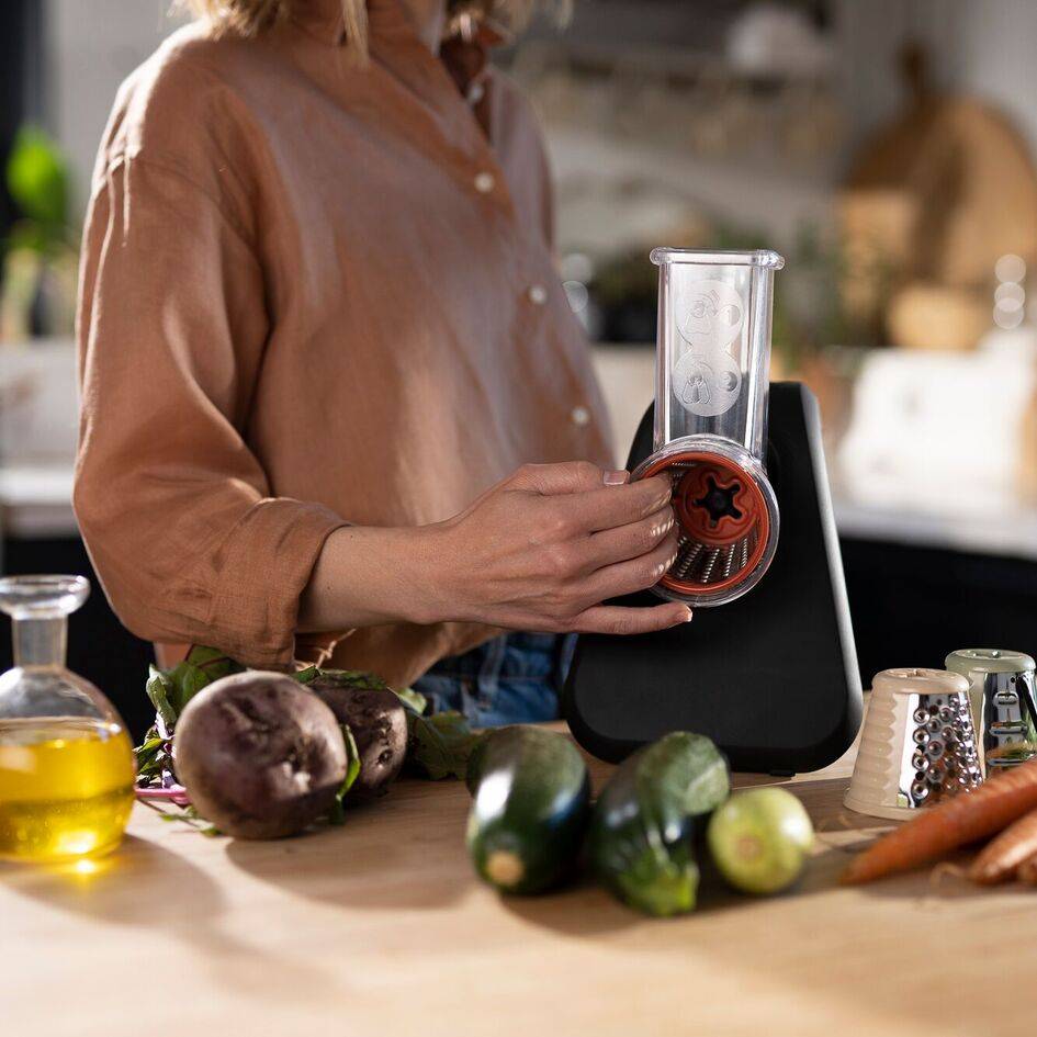 Noch nie war die Zubereitung von Gemüse so einfach wie mit Ihrer Eco Respect Reibe! Mit einem farblich codierten Kegelsystem bietet der elektrische Hobel und Reibe von Tefal die Lösung für all Ihre Ansprüche an die Zubereitung von Gemüse in einem bedienerfreundlichen Gerät. Reiben, Schneiden und Zerkleinern, für perfekte und außergewöhnliche Ergebnisse bei all Ihren Lieblingsgerichten und Zutaten: Gemüse, Obst, Käse, Schokolade und vieles mehr — für Rezepte wie frische und köstliche Salate, geschmackvolle Krapfen und knusprige Kartoffelpuffer, die jederzeit gelingen. Der große Einfüllschacht für weniger Arbeit beim Zuschneiden der Zutaten, in einem pflegeleichten Design und zum mühelosen Einräumen, rundet das Paket ab. Diese Reibe im Eco-Design verleiht dem ansprechenden und kompakten Gerät den letzten Schliff und passt perfekt in jede Küche.