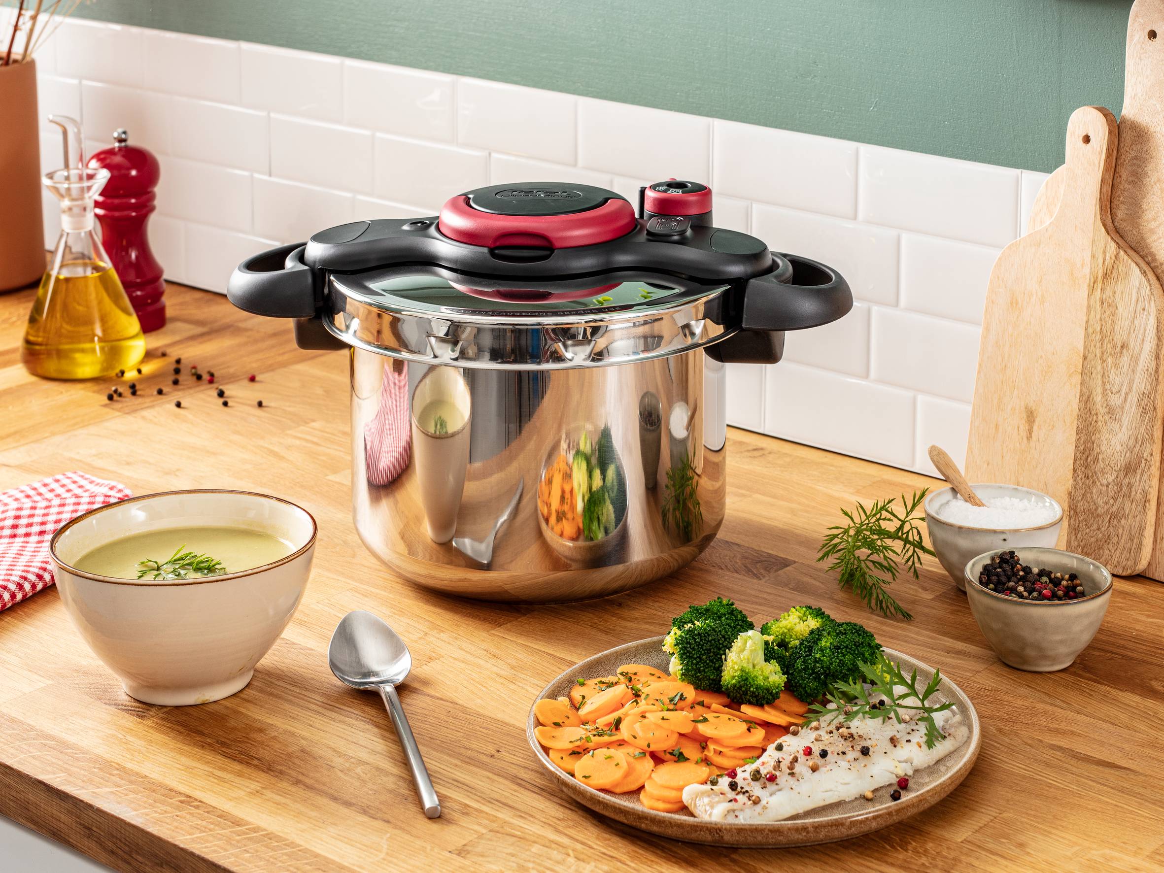 Von Fleisch und Fisch bis hin zu Gemüse und sogar Desserts - der ClipsoMinut' Easy schafft alles - und das bis zu zweimal schneller*. Der ClipsoMinut' Easy ist aus haltbarem Edelstahl gefertigt und sein benutzerfreundliches Design macht das Öffnen und Schließen zu einem Kinderspiel. Sie brauchen nur eine einzige Hand! Entdecken Sie einen Schnellkochtopf, der köstliche, gesunde Mahlzeiten verspricht, bei denen die natürlichen Vitamine und Nährstoffe der Lebensmittel erhalten bleiben. Er ist perfekt für die ganze Familie - und garantiert bei jeder Verwendung absolute Sicherheit.