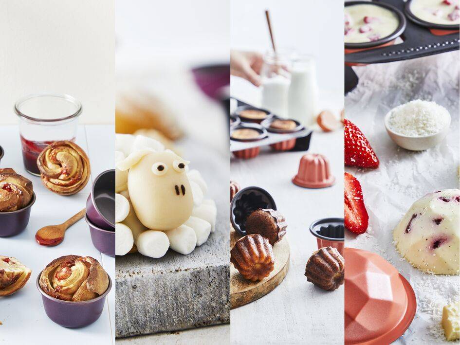 Create muffins, madeleines, cannelés and brioche, plus an endless varieties of other cakes and baked goods—all in a range shapes and sizes. From stones, domes, mini cakes and long cakes to facets, small baguettes and mini-breads, the unique Creabake tray—with its removable, interchangeable cups—is the key to unlocking delicious baking! Plus, the stackable cups ensures easy storage that saves space in your kitchen.