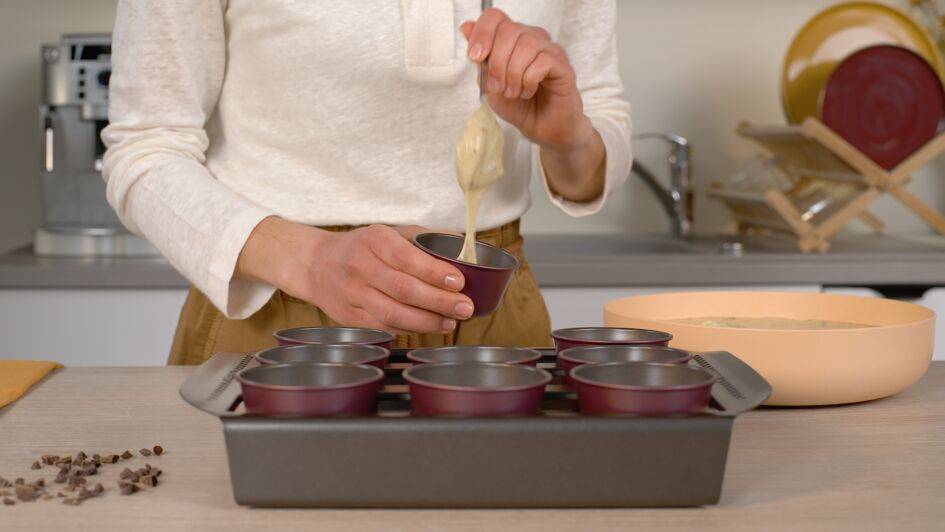 Cups can be used with the Cake Factory. Place up to six madeleine cups in the 6-hole Creabake tray and up to nine cups in the 9-hole Creabake tray—ideal for preparing the right amount according to your needs.