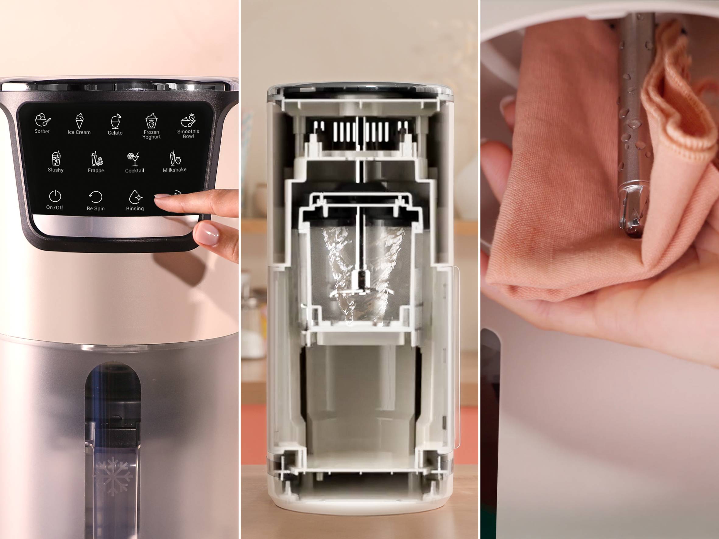 Dank unserer einzigartigen 1-Step-Perfector-Technologie wird das Eismachen zum Kinderspiel. Inspiriert von professionellen Maschinen sorgen die 1-Step-Perfector-Klingen mit ihrem Doppelklingen-System für ein extra cremiges Ergebnis gleich beim ersten Versuch – ganz ohne erneuten Re-Spin!