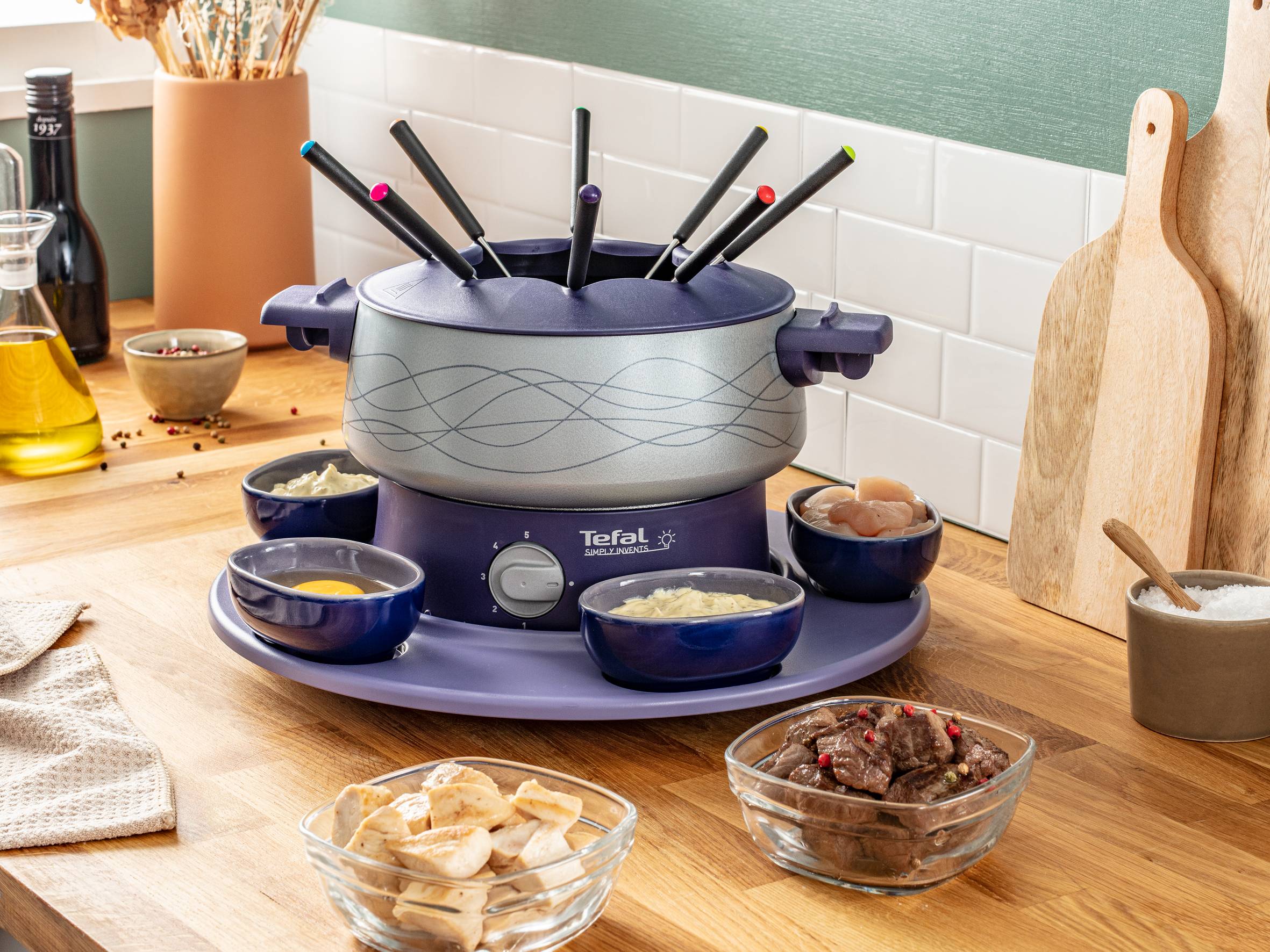 FONDUE-SET FÜR BIS ZU 8 PERSONEN: ideal für köstliche Momente mit Familie und Freunden DREHBARE SCHALE MIT 5 SCHÄLCHEN: für Saucen und Zutaten, um diese einfach zu teilen EINSTELLBARES THERMOSTAT: für die perfekte Wärmeregulierung und jede Art von Fondue, u. a. Käse, Öl und Schokolade EINFACHE REINIGUNG: Topf, Schälchen und Gabel spülmaschinengeeignet für eine einfache Reinigung BESONDERS LANGLEBIG: Antihaftbeschichteter Topf für bessere Haltbarkeit und Beständigkeit MADE IN FRANCE: Hergestellt in Frankreich, mit Expertenkenntnissen und traditionellem Know-how