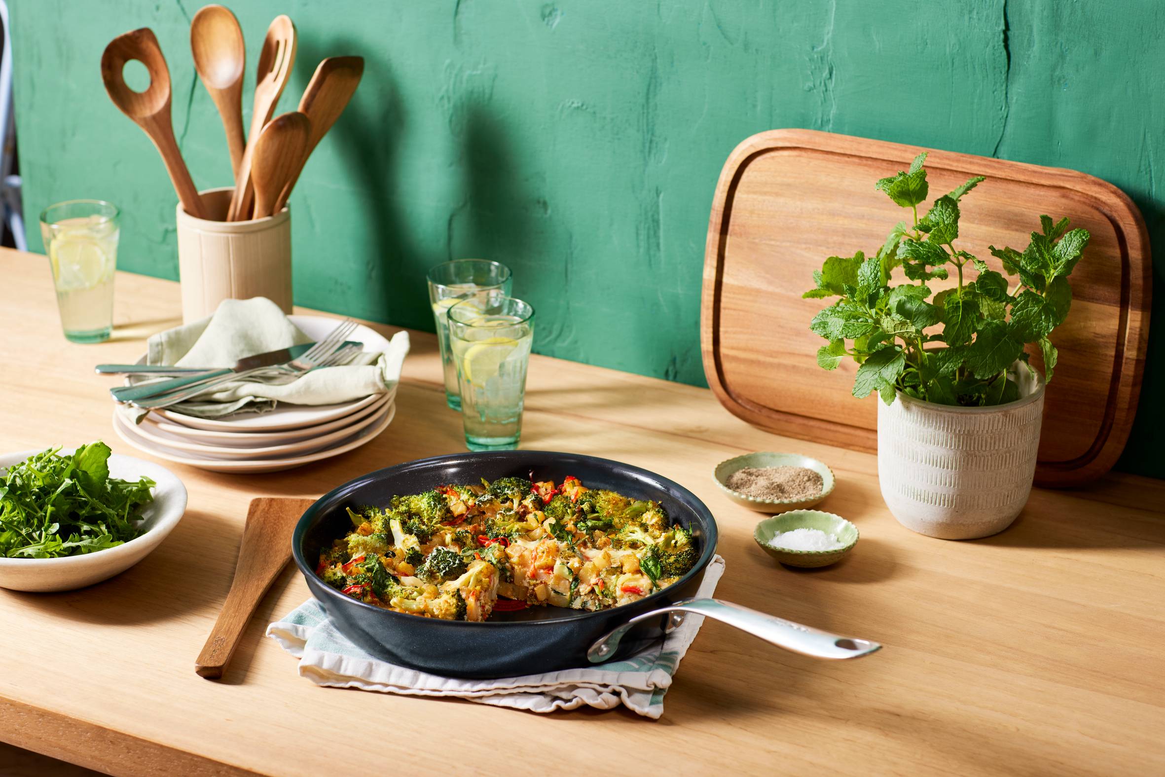 Braten Sie Fisch perfekt an, backen Sie herrlich fluffige Pfannkuchen und vieles mehr mit diesem unverzichtbaren Keramikpfannenset - der Schlüssel zum Erfolg in jeder Küche! Jamie Oliver: „Ich freue mich riesig über diese neue Serie von Keramikpfannen. Sie müssen nicht extrem heiß werden, um großartige Ergebnisse zu erzielen. Sie sind ideal zum schonenden Braten und Dünsten, und genau diese Art des Kochens trägt auch dazu bei, die Pfannen länger haltbar zu machen. Solche Innovationen machen die Zusammenarbeit mit Tefal seit mittlerweile zwei Jahrzehnten zu einem echten Vergnügen. Außerdem verfolgen wir beide dasselbe Ziel: mehr Menschen dazu zu bringen, leckeres und gesundes Essen von Grund auf selbst zuzubereiten.“
