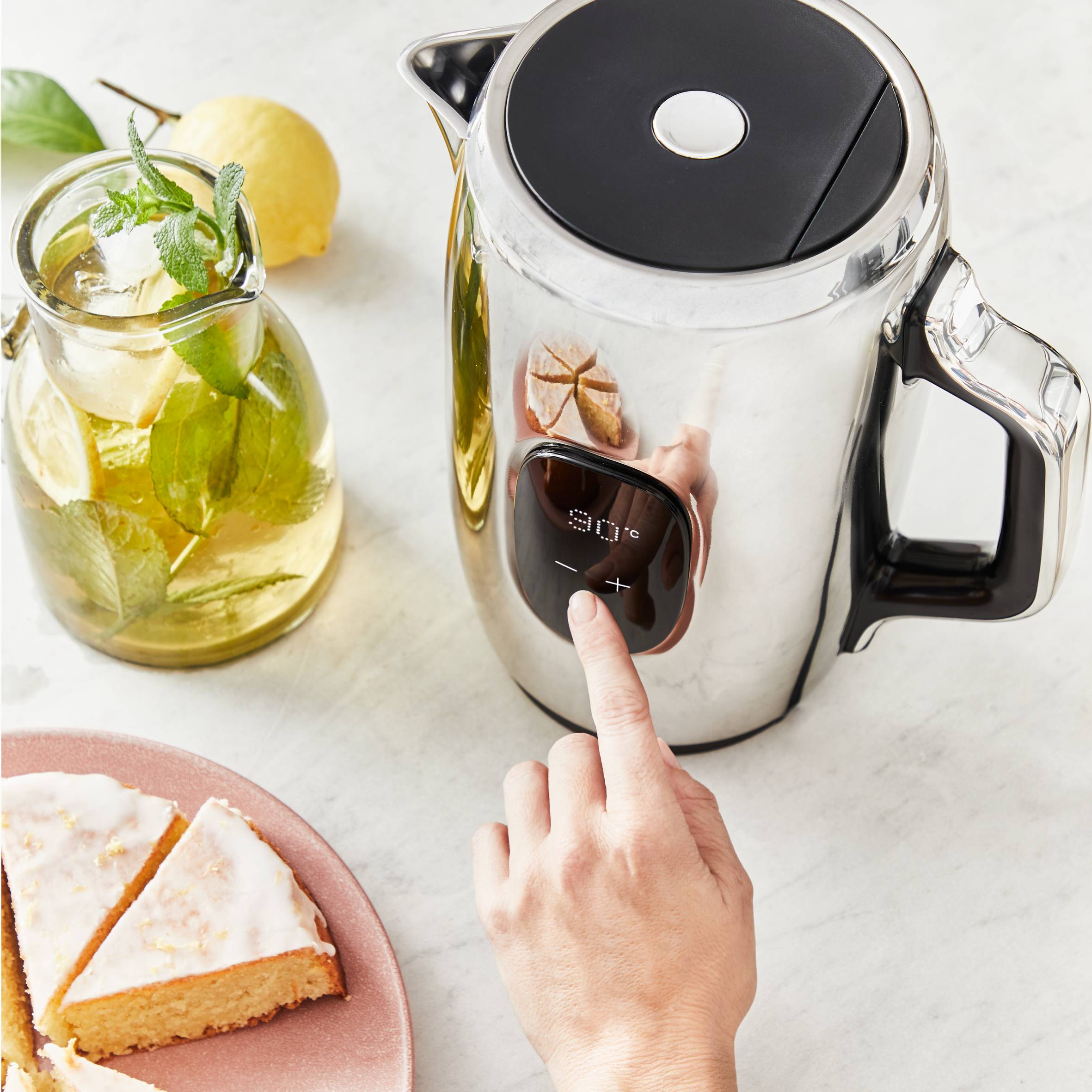 Wir stellen vor: Majestuo, das atemberaubende Set, das das Frühstück zum ultimativen Erlebnis macht. Elegantes, modernes Design und hochwertige Materialien treffen auf fortschrittliche Technologie für ein unvergleichliches Frühstücksset. Der Majestuo Wasserkocher verfügt über einen intuitiven Touchscreen, der alle wichtigen Informationen auf Knopfdruck bereitstellt, sowie über neun Temperatureinstellungen, die sich Ihren Bedürfnissen anpassen - für eine Reihe köstlicher Heißgetränke.