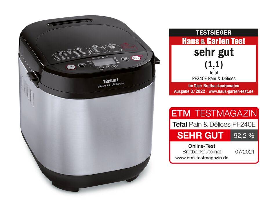 Pain & Délices ist die vielseitige Brotbackmaschine von Tefal. Ihrer Fantasie sind keine Grenzen gesetzt! Genießen Sie nicht nur frisches & schmackhaftes hausgemachtes Brot, sondern auch Pizzateig, frische Nudeln, Marmelade, Porridge und Getreide, sowie Milchprodukte! Die 20 Programme umfassen auch glutenfreie Programme für eine große Bandbreite von gesunden Broten und Kuchen. Entdecken Sie sie mit dem beiliegenden Rezeptheft! Sie können nun auch Milchprodukte für Ihre Familie zubereiten, dank drei spezieller Programme und dem mitgelieferten 1-l-Joghurtbecher. Ob Sie kleine oder große Brotmengen wünschen, Single sind oder eine große Familie haben, Sie haben die Wahl zwischen 3 Brotgrößen von 500 g bis 1 kg. Die leichte und kompakte Pain & Délices Brotbackmaschine besitzt ein modernes und hochwertiges Design dank ihres Metall-Finish, das perfekt in jede Küche passt. Und schließlich genießen Sie jederzeit frisches, warmes Brot dank des 15-Stunden-Timers: Was kann schöner sein, als der Duft frischen Brots am Morgen? ETM Testmagazin sagt SEHR GUT 92,2% im Test 07/2021