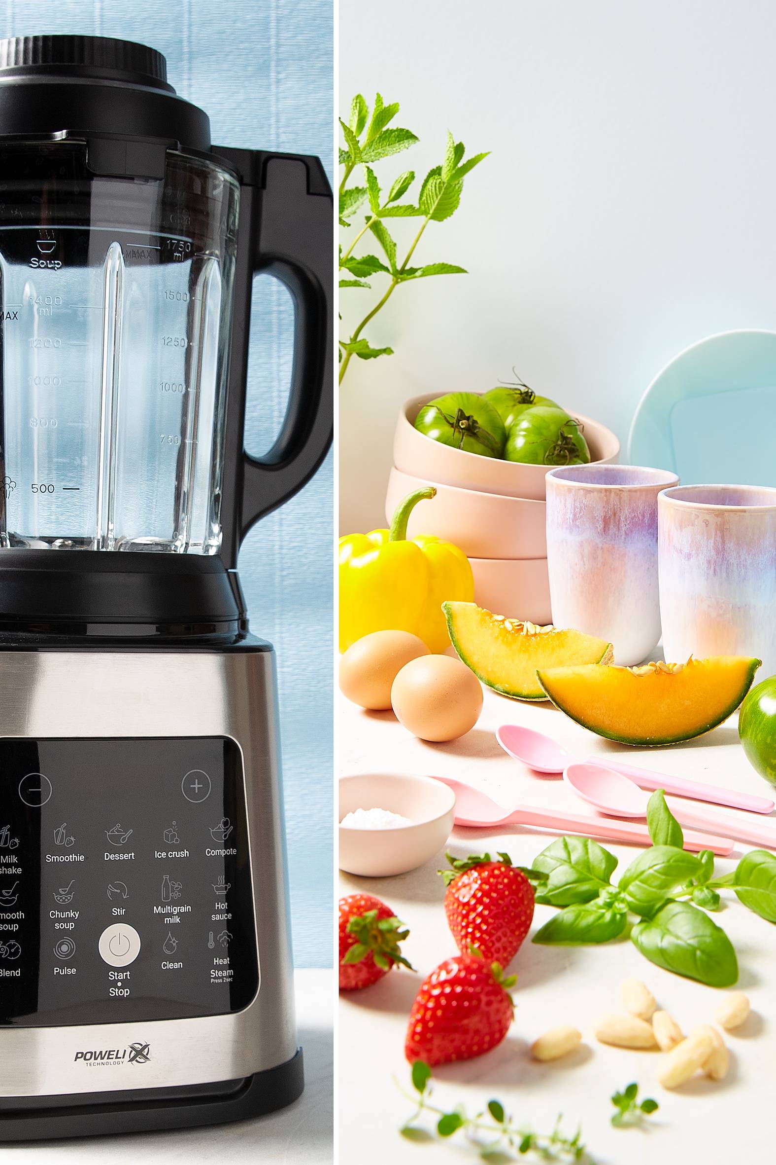 Von eisgekühlten Smoothies aus frischen Früchten bis hin zu heißen, herzhaften Suppen und deftigen Eintöpfen – mit dem PerfectMix Cook steht Ihnen eine unglaubliche Vielfalt zur Verfügung. Dieser vielseitige Mixer mit Kochfunktion von Tefal sorgt für hohe Geschwindigkeiten, leistungsstarkes Mixen und vieles mehr für heiße, kalte, feste und flüssige Rezepte – alles mit nur wenigen Klicks. Entdecken Sie 10 automatische Heiß- und Kaltprogramme sowie eine Dampffunktion mit einem speziellen Korb, der Ihren Mixer in einen gesunden Dampfgarer verwandelt – ideal für nährstoffreichen Fisch und Gemüse, frische Meeresfrüchte und mehr. Und wenn Sie mit dem Kochen fertig sind, geht die Reinigung ganz mühelos von der Hand. Dank der herausnehmbaren Klingen und der einzigartigen Tiefenreinigungsfunktion, die 99,99 %* der Bakterien vernichtet, wird das Gerät hygienisch sauber und Sie können sich entspannt zurücklehnen. Dank der leistungsstarken Powelix-Klingentechnologie für eine um bis zu 30 % schnellere Leistung** und einem intuitiven Tastbildschirm, sind Ihren Zubereitungsmöglichkeiten keine Grenzen gesetzt.