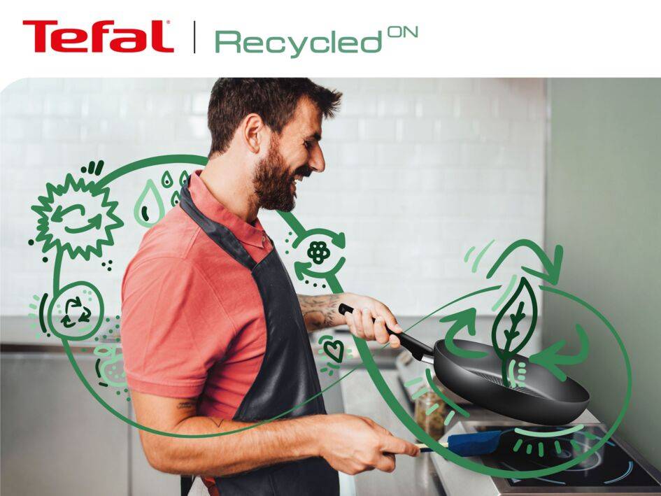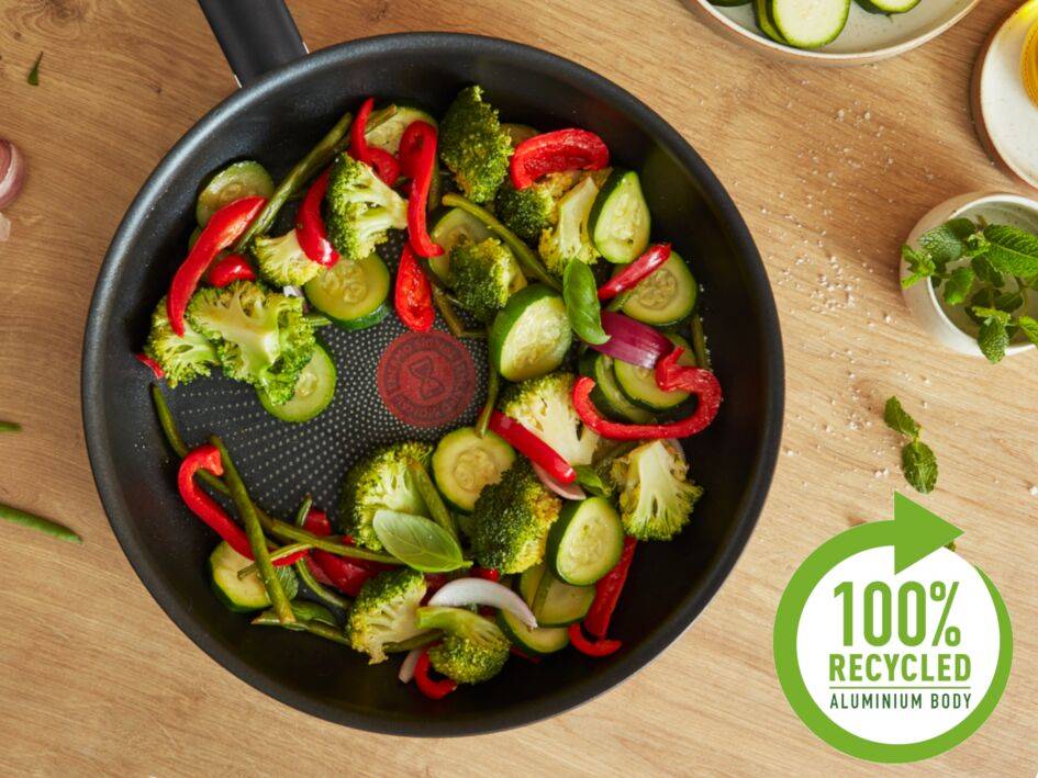 Entdecken Sie Tefal Recycled On, eine erschwingliche Bratpfanne mit langlebiger Leistung und perfekten Ergebnissen, jederzeit. Unsere sichere und langlebige Titanium-verstärkte Antihaftversiegelung verspricht eine einwandfreie Gleitfähigkeit, die bis zu doppelt so lange anhält (im Vergleich zur Standard-Antihaftversiegelung von Tefal). Mit einem Pfannenkörper aus 100% recyceltem Aluminium* bietet diese Bratpfanne die charakteristischen Merkmale von Tefal – einschließlich des Thermo-Signal Temperaturindikators und der fortschrittlichen Induktionstechnologie – für einfacheres Kochen Tag für Tag.