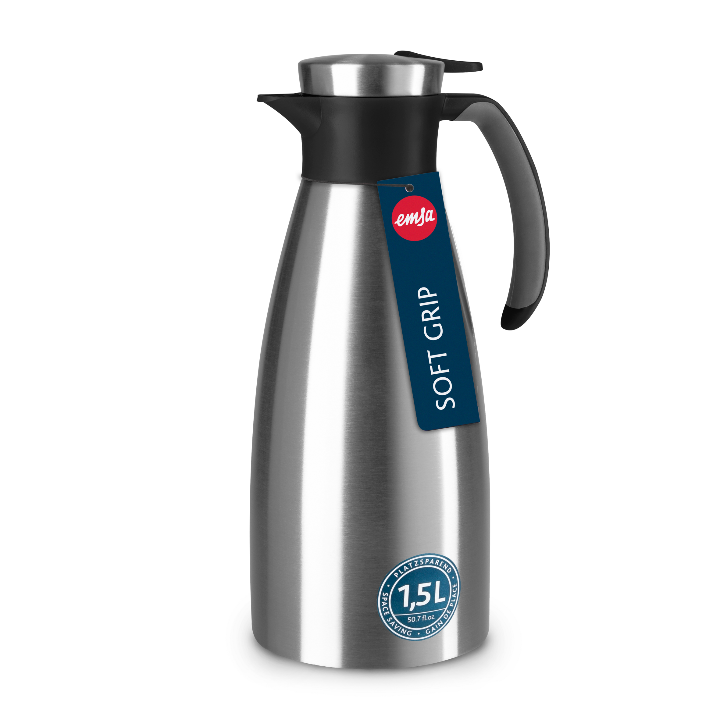 FASSUNGSVERMÖGEN: Die Soft Grip Isolierkanne ist mit einem Volumen von 1,0 l und 1,5 l erhältlich.