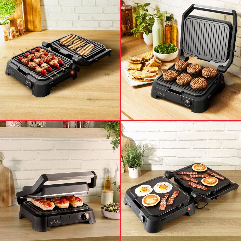 Verbessern Sie Ihre Kochkünste zu Hause mit dem SuperGrill 4in1. Verwenden Sie ihn als Kontaktgrill für Fleisch, Gemüse und Sandwiches, die jedes Mal gelingen, oder öffnen Sie ihn um 180°, um Ihren SuperGrill in einen Barbecue-Grill zu verwandeln. Die Backofen-Position ist ideal zum Erhitzen und Aufwärmen und mit den beigefügten Plancha-Platten gelingen all Ihre Brunches und Plancha-Parties.