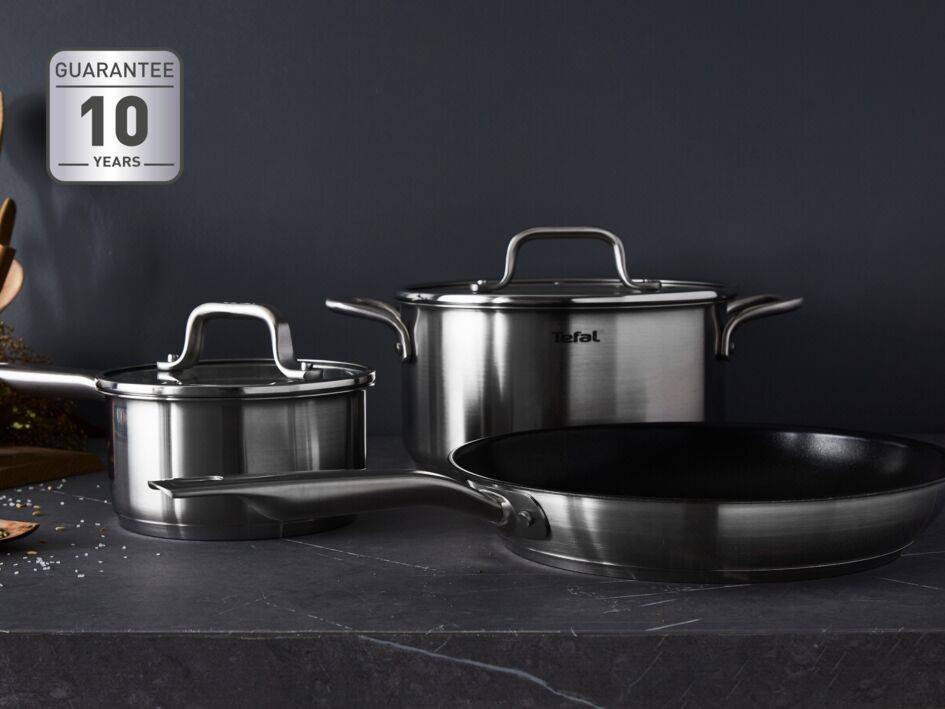 Entdecken Sie mit Tefal Virtuoso robustes Kochgeschirr, das alles mitmacht. Diese unversiegelte Bratpfanne aus rostfreiem Stahl bietet eine unübertroffene Widerstandsfähigkeit, die durch eine 10-Jahres-Garantie geschützt ist, und verspricht unvergleichliches Grillen und Anbraten aller Arten von Zutaten. Dank des besonders widerstandsfähigen, genieteten Griffs können Sie sicher kochen, mühelos vom Herd in den Backofen wechseln und dann die einfache Reinigung mit der spülmaschinengeeigneten, scheuerschwammtauglichen Oberfläche genießen!