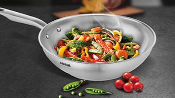 Entdecken Sie mit Tefal Virtuoso robustes Kochgeschirr, das alles mitmacht. Diese unversiegelte Wokpfanne aus rostfreiem Stahl bietet eine unübertroffene Widerstandsfähigkeit, die durch eine 10-Jahres-Garantie geschützt ist, und verspricht unvergleichliches Grillen und Anbraten aller Arten von Zutaten. Dank des besonders widerstandsfähigen, genieteten Griffs können Sie sicher kochen, mühelos vom Herd in den Backofen wechseln und dann die einfache Reinigung mit der spülmaschinengeeigneten, scheuerschwammtauglichen Oberfläche genießen!